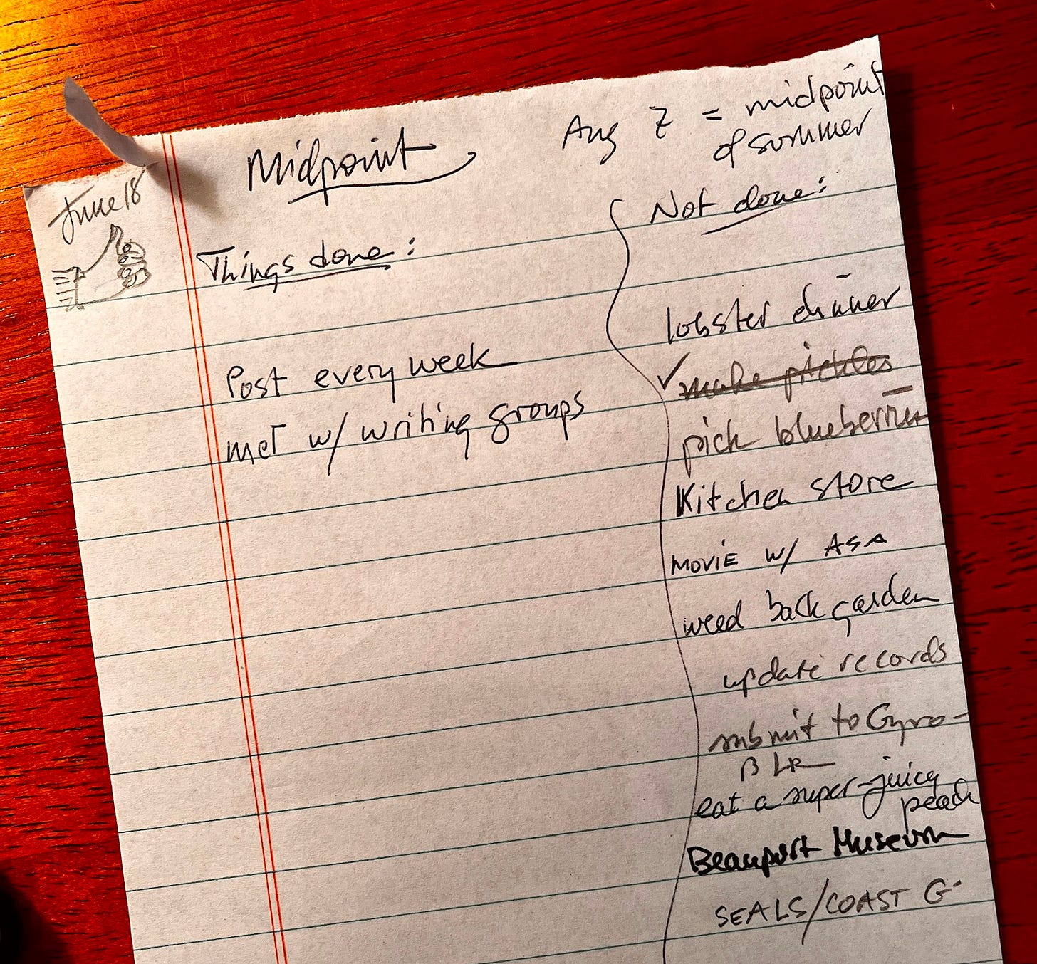 The biggest time commitment by far — not just this summer, but for the past year and then some — appears at the top of the column labelled ‘things done’. Publishing these weekly posts is intensely time- and energy-consuming, but also deeply satisfying — especially when I hear from readers. But in light of the long ‘not done’ column on my list, I’ve decided to space my posts out differently during September and October. I’ll publish a new post on September 5th & every other Friday thereafter, instead of each week. Reader feedback on this more langorous schedule are most welcome.