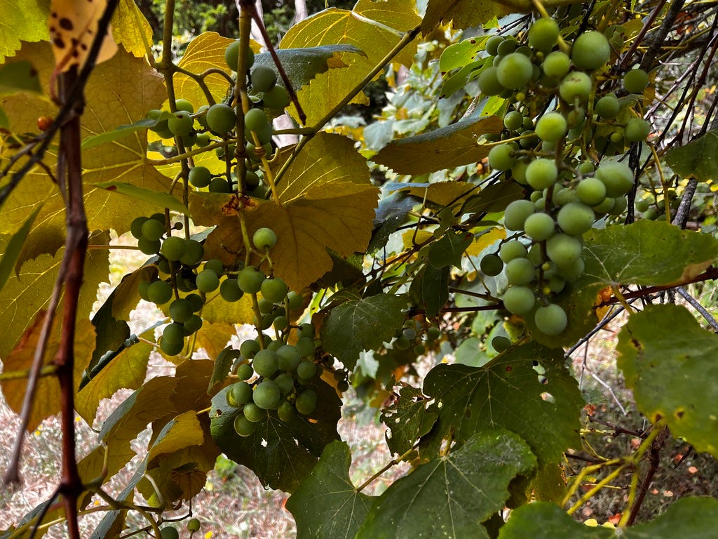 Nearby, a couple of catbirds were flitting from one low branch to another, loudly insisting they’d gotten there first — to which I replied, “Maybe so, but I pay the taxes. Here, you can have the nine berries — they’re hardly worth a squabble! Plus you and your kin will have the advantage once the grapes ripen overhead, with me stuck down here on the ground!”
